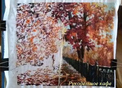 Если вы помните, у Ксюши в блоге "Отдых для души" я шью долгострои свои. Сейчас я работаю над картиной " Блюз падающей листвы" по мотивам пейзажа Л. Афремова - обалденная красота, но ужасная схема Золотого Руна, поэтому добрые люди дали мне ее в РМ и я шью по цветам))